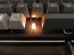 New replacement incandescent keyboard lamp for the Apple ///. Without a working keyboard lamp, the Apple /// will not pass initial diagnostics.