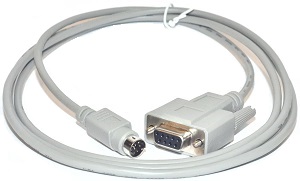Approximately 6 feet long, made with shielded cable. Converts the Apple IIc or Laser 128 modem port to a female DE-9 connector, typical on older PCs with RS-232 serial ports. A newer computer will likely also need a USB adapter, below.